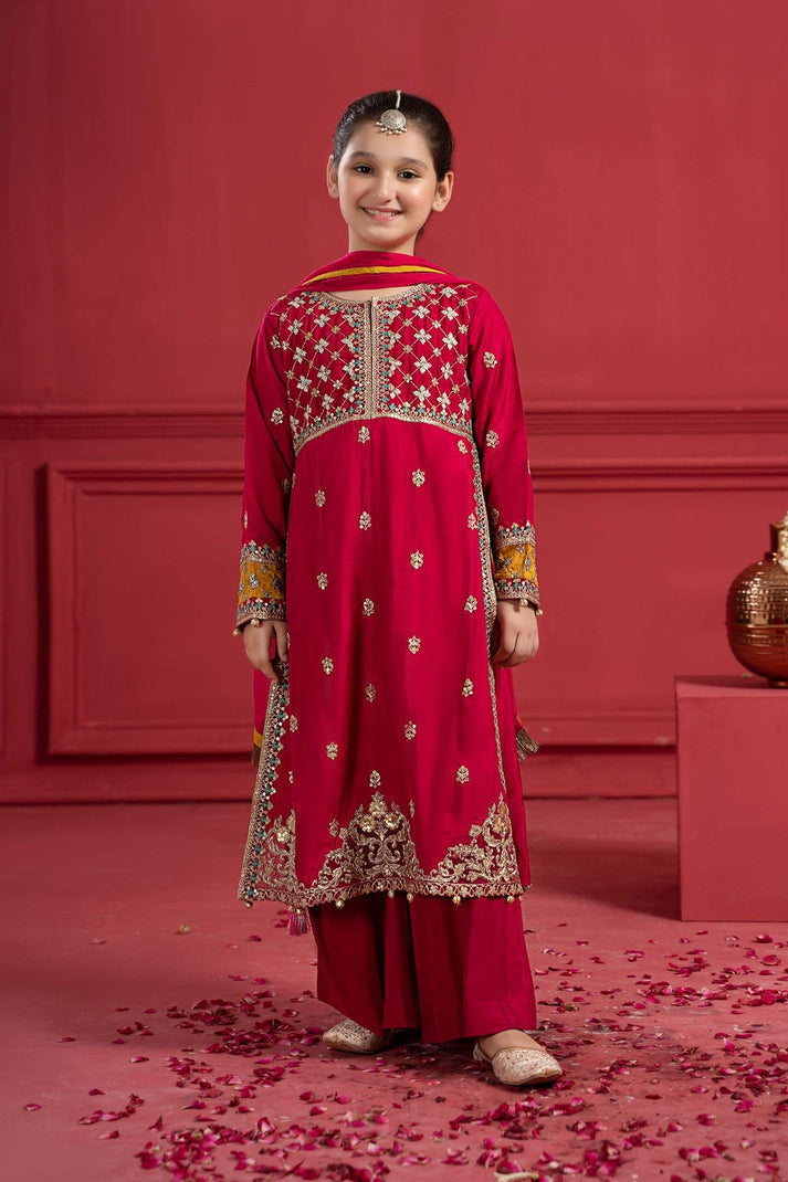 Kids 3PC Emb Lawn Dress With Net Dupatta - (Unstitched) - AL307