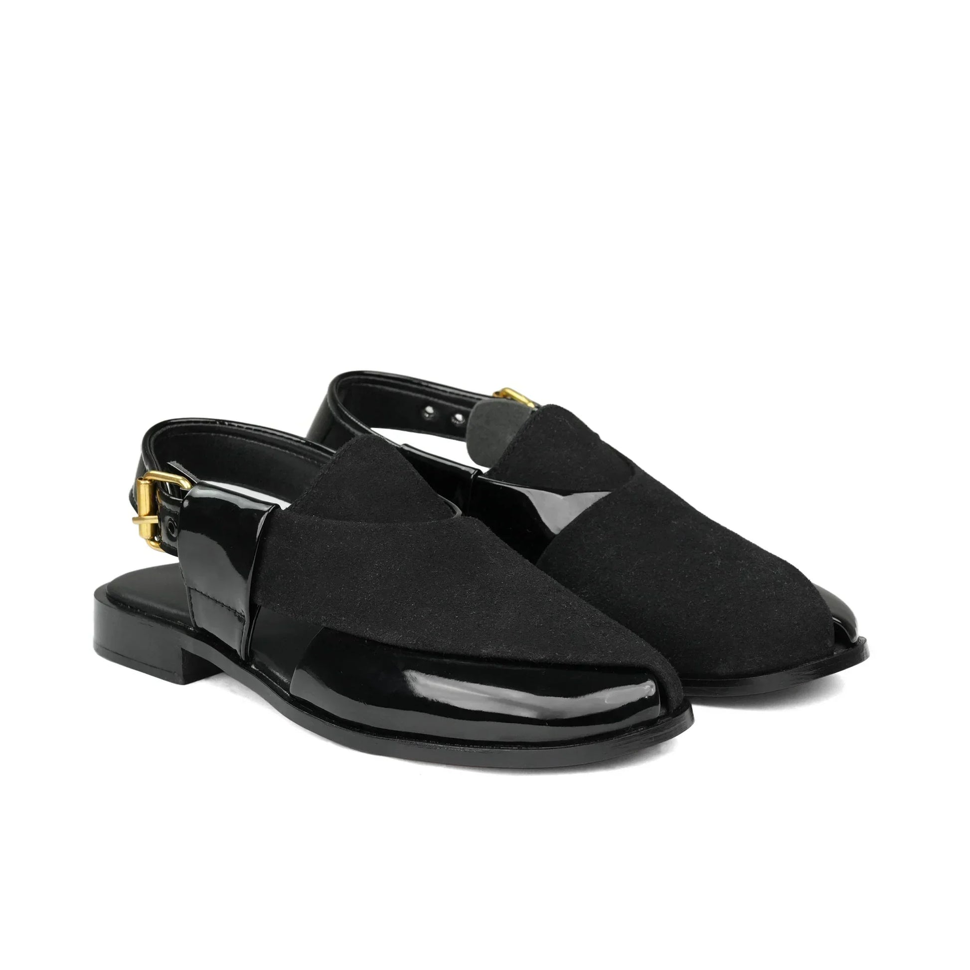 Step into elegance with these Regal Black Glitter Kherri. Featuring a sleek design with a shimmering black finish and adorned with a striking gold crown emblem, these loafers are the perfect choice for formal events, weddings, or upscale parties. Crafted for both style and comfort, they offer a luxurious touch to any outfit. Elevate your fashion game with these standout shoes that blend sophistication and glamour effortlessly.